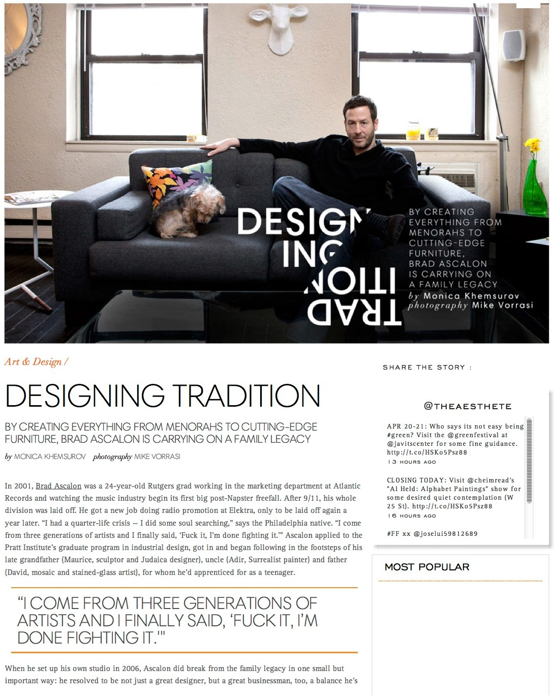 Sample of editorial work as Features Editor at The Aesthete (theaesthete.com). Conceived all stories, edited all copy, produced all photo shoots, wrote all display copy.  August 12-Jan. 13.